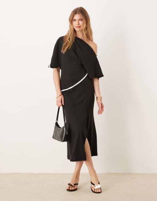 Vestido midi con hombro descubierto y detalle en contraste de ASOS DESIGN