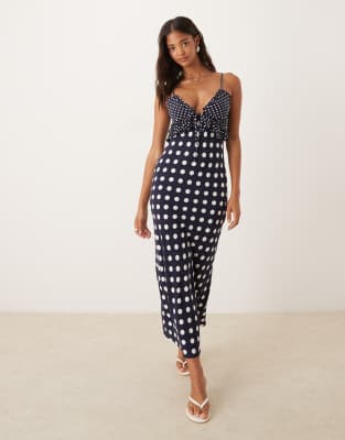 Vestido midi de tirantes con detalle de volante y estampado de lunares variados de ASOS DESIGN