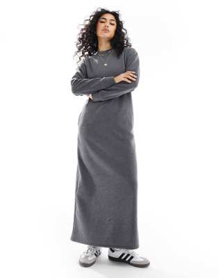 Vestido midi gris carbón estilo sudadera con cuello redondo de ASOS DESIGN