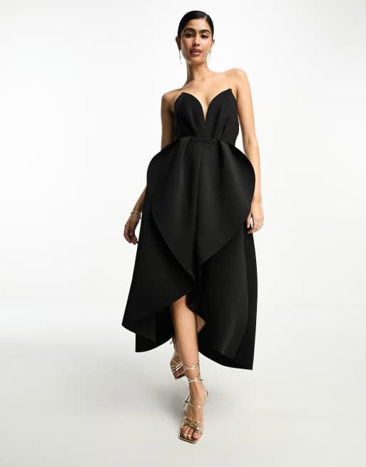 Vestido midi negro de corte skater estilo cocoon con escote palabra de honor y detalle pronunciado de ASOS DESIGN