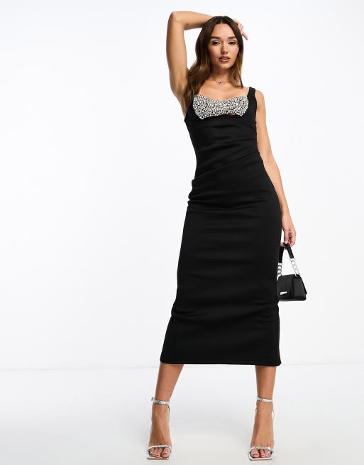 Vestido midi negro de tejido efecto neopreno con pecho de abalorios de ASOS DESIGN