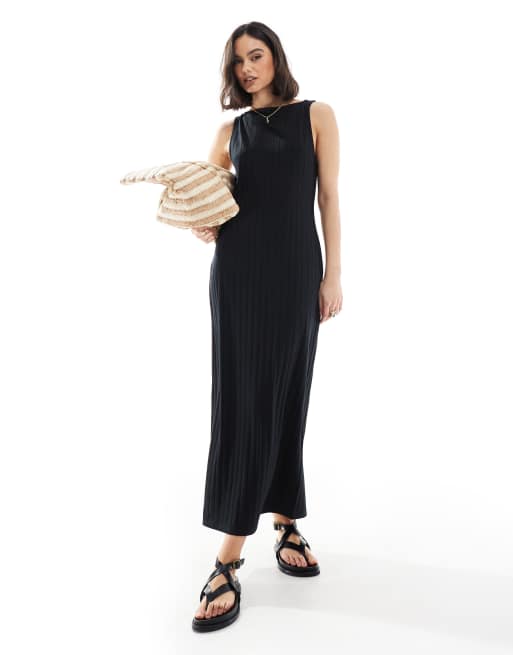 Vestido midi negro sin mangas con cuello barco de canalé ancho de ASOS DESIGN