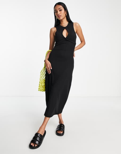 Vestido midi negro sin mangas con detalle de abertura en forma de cerradura de canalé de ASOS DESIGN