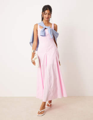 Vestido midi rosa sin mangas con cintura entallada de ASOS DESIGN