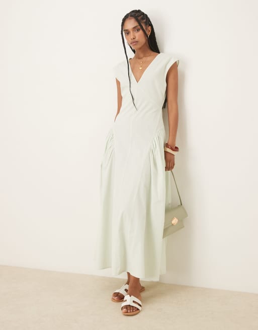 Vestido midi verde menta de corte depurado con cuello de pico y bajo de godets plisados de ASOS DESIGN