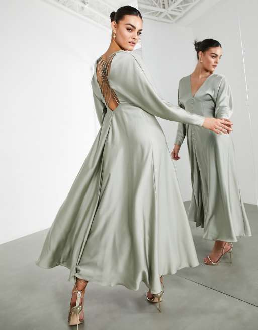 Vestido midi verde salvia con detalle enrejado en la espalda de satén de ASOS DESIGN
