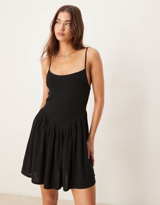 Vestido playero corto negro fruncido de ASOS DESIGN