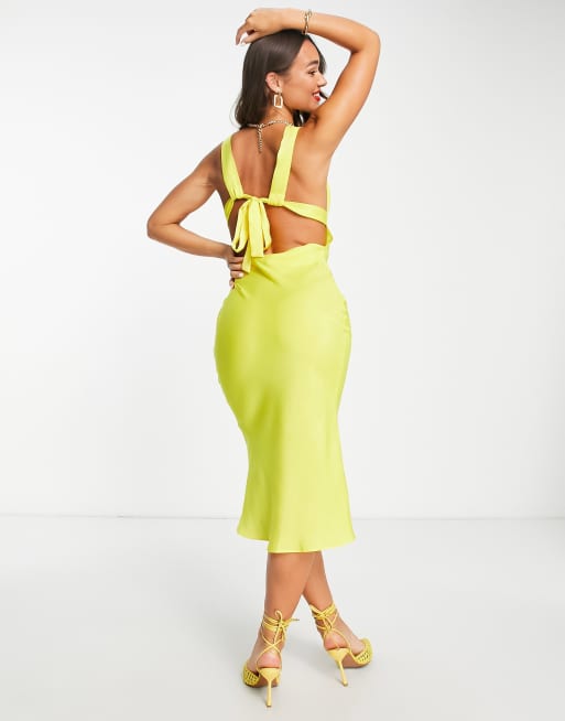 Vestido semilargo amarillo de corte al bies con detalle de costuras en el pecho de satén de ASOS DESIGN
