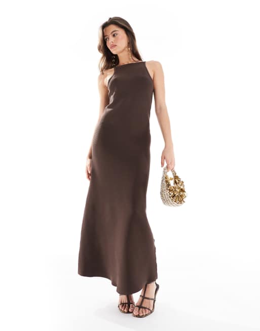 Vestido semilargo marrón chocolate de tirantes de punto compacto de ASOS DESIGN
