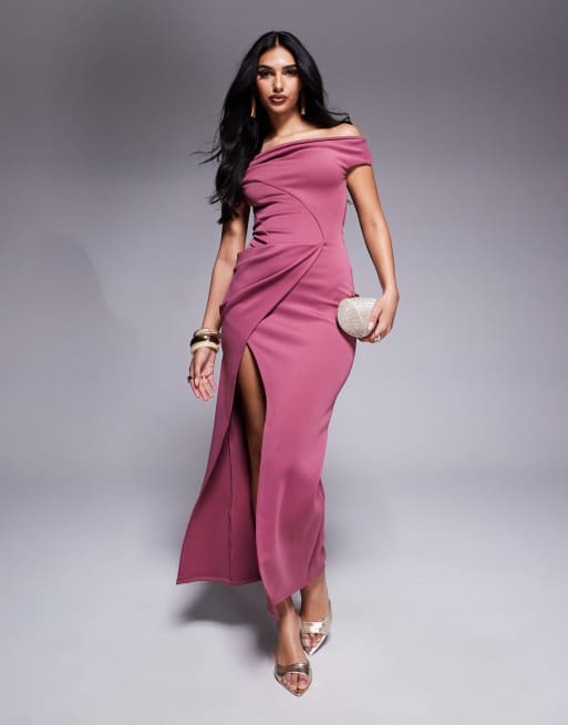 Vestido semilargo rosa empolvado con escote Bardot estructurado y cuerpo de ballenas de tejido efecto neopreno de ASOS DESIGN