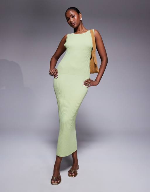 Vestido semilargo verde pistacho con cuello barco de canalé ancho de ASOS DESIGN