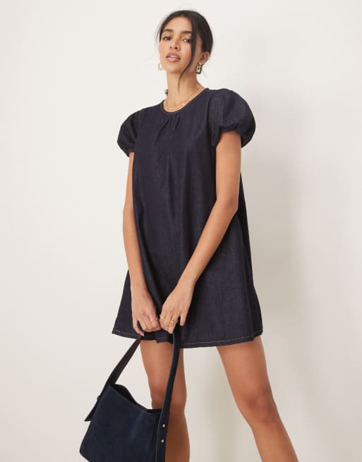 Vestido vaquero corto amplio con mangas abullonadas de ASOS DESIGN
