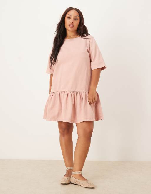 Vestido vaquero corto rosa con cuerpo estilo camiseta y cintura baja de ASOS DESIGN Curve