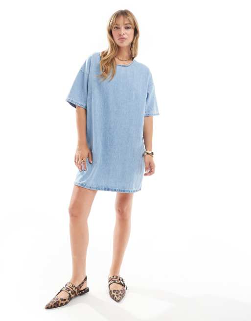 Vestido vaquero estilo camiseta con lavado azul medio de ASOS DESIGN