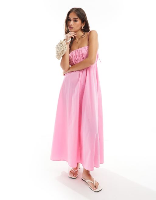 Vestido veraniego largo azul pastel con pecho fruncido y tirantes regulables de ASOS DESIGN