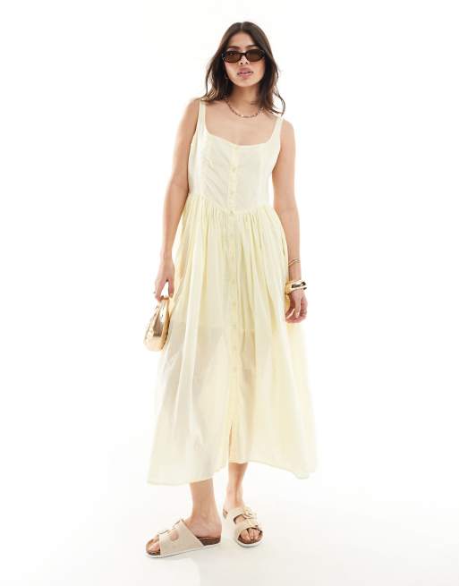 Vestido veraniego midi amarillo limón de estilo campero de voile de ASOS DESIGN