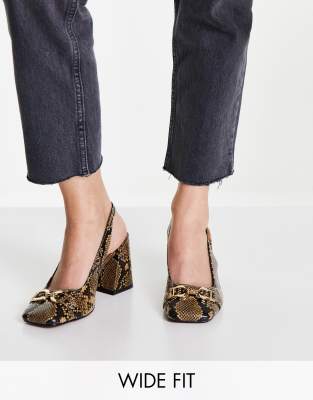 Zapatos beis efecto serpiente destalonados con tacón y detalle de bridón Stable de ASOS DESIGN Wide Fit