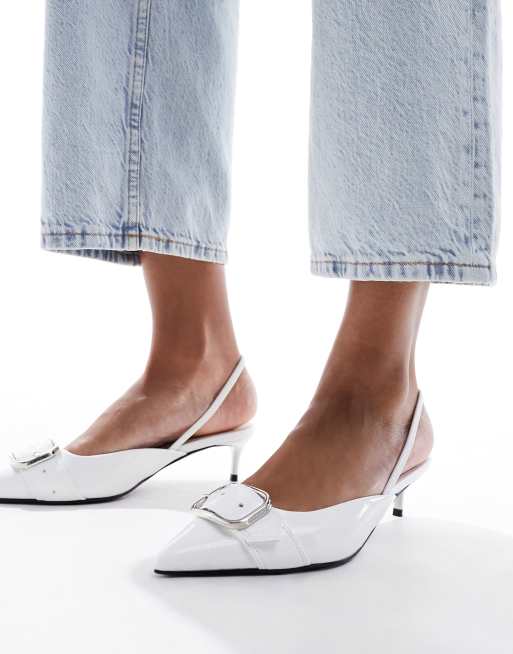 Zapatos blancos de tacón bajo con tira talonera y detalle de hebilla Score de ASOS DESIGN