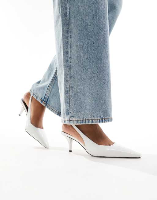 Zapatos blancos efecto piel de cocodrilo de tacón bajo con correa talonera Shake de ASOS DESIGN