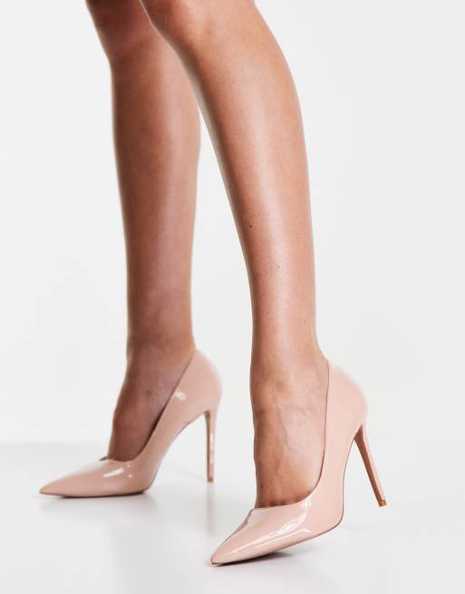 Zapatos de salón beis con tacón alto y puntera fina de charol Penza de ASOS DESIGN