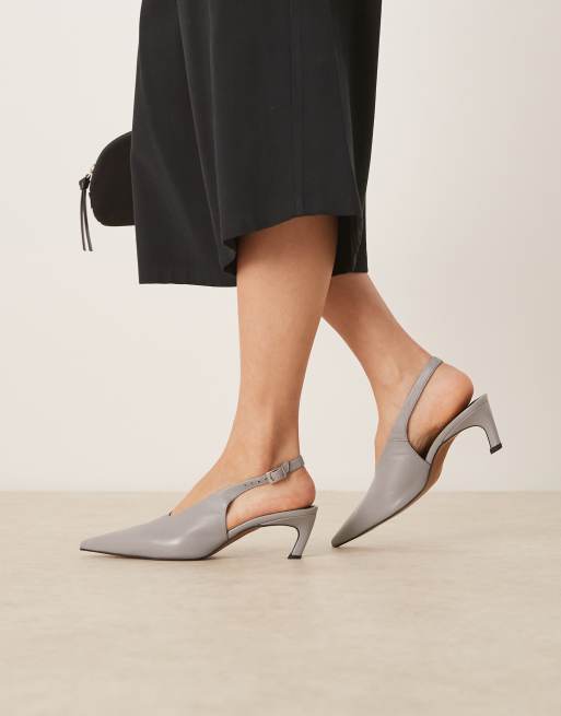 Zapatos grises destalonados de tacón medio de cuero premium Sculpt de ASOS DESIGN