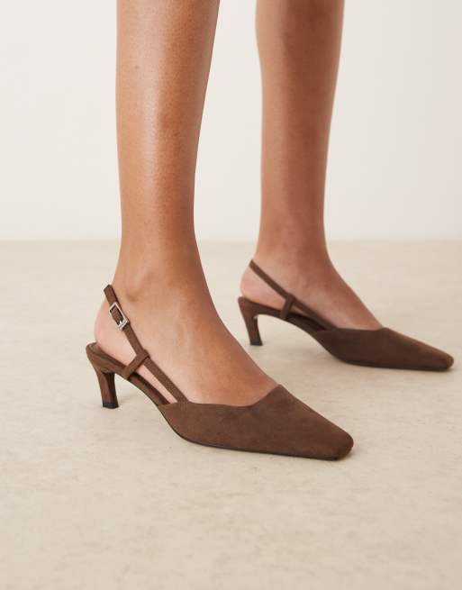 Zapatos marrón chocolate destalonados de tacón medio con puntera fina cuadrada de antelina Shadow de ASOS DESIGN