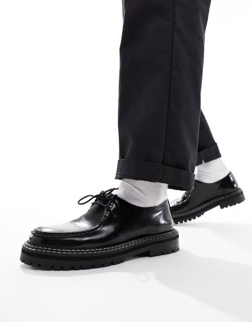 Zapatos negros con cordones y detalles de costuras de cuero de ASOS DESIGN