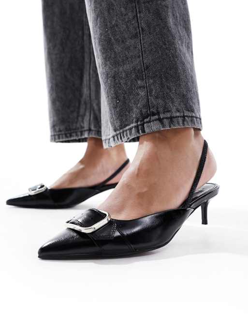 Zapatos negros de tacón bajo con tira talonera y detalle de hebilla Score de ASOS DESIGN