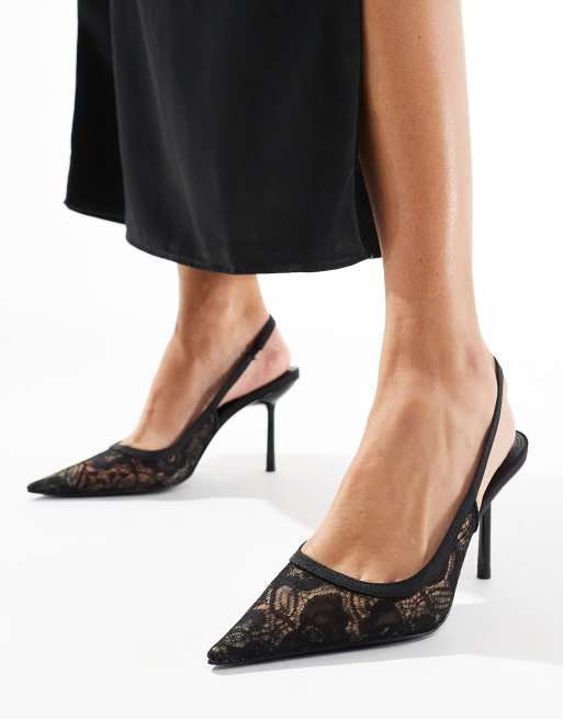 Zapatos negros destalonados de tacón alto de encaje Poser de ASOS DESIGN