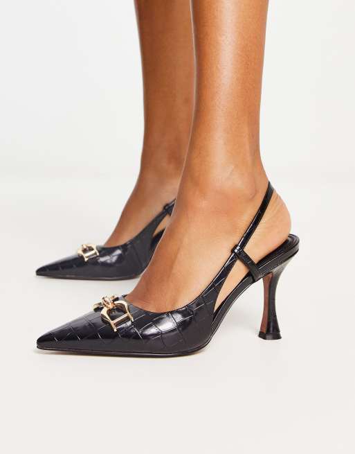 Zapatos negros efecto cocodrilo con tacón medio y detalle de bridón Stockholm de ASOS DESIGN