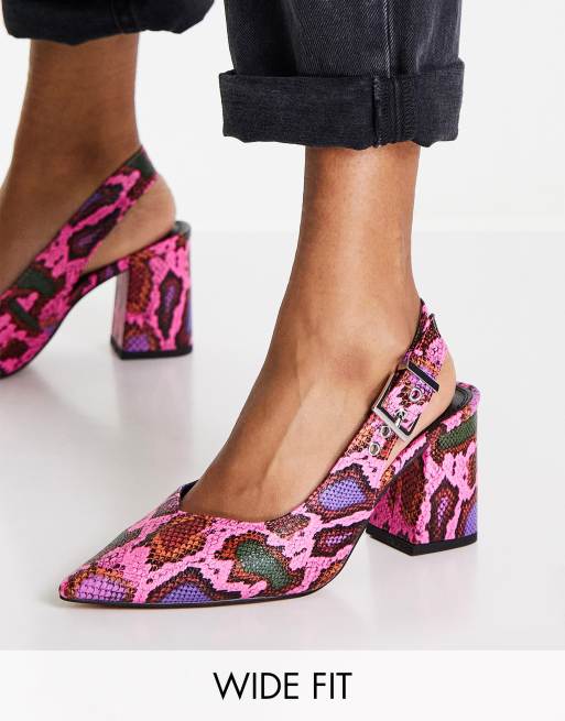 Zapatos rosas destalonados efecto cocodrilo con tacón en bloque West de ASOS DESIGN Wide Fit