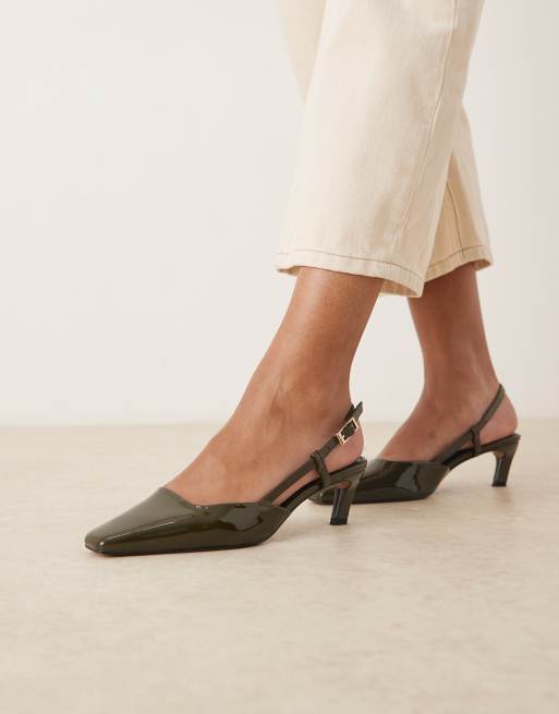 Zapatos verdes destalonados de tacón medio con puntera fina cuadrada de charol Shadow de ASOS DESIGN