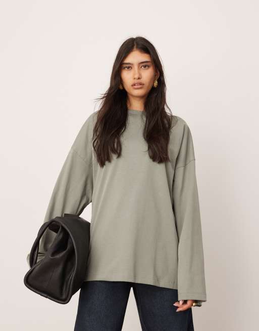 Camiseta verde oliva extragrande de manga larga de algodón premium de ASOS EDITION