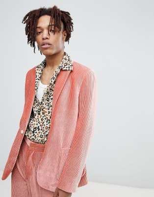 Chaqueta de traje ajustada y plisada en terciopelo rosa de ASOS EDITION