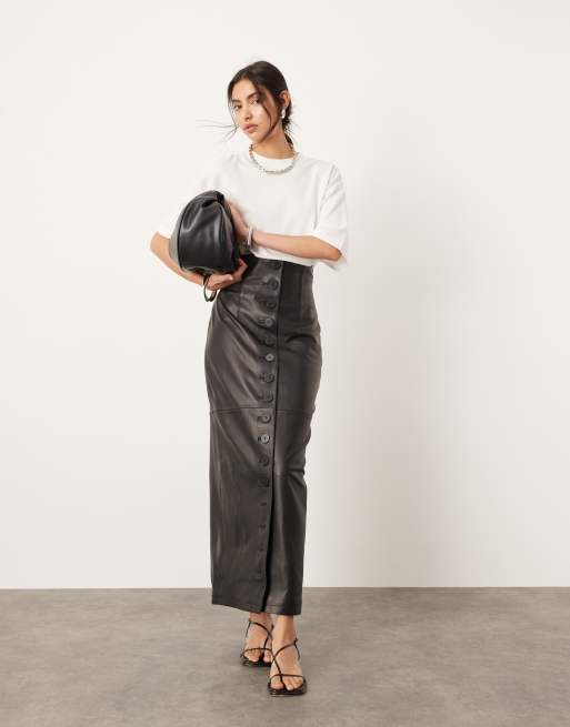 Falda larga negra de talle alto con detalle de botones de cuero suave de ASOS EDITION