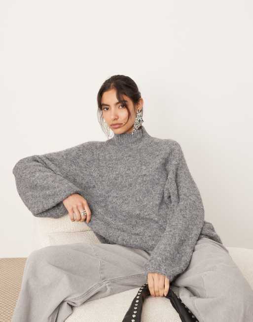 Jersey gris jaspeado extragrande con cuello alto de punto de ASOS EDITION