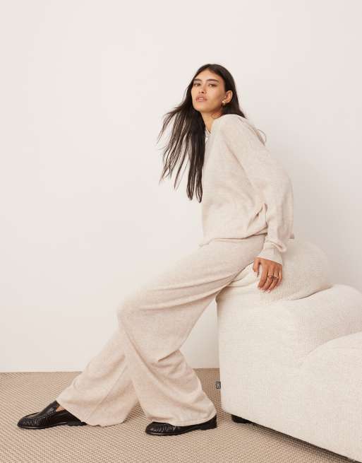 Pantalones color avena de pernera ancha de punto de mezcla de cachemir premium de ASOS EDITION