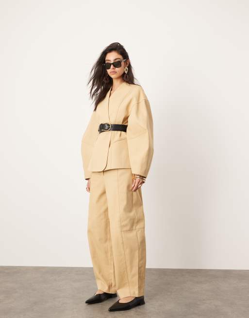 Pantalones marrón claro de corte barrel con detalle de bolsillo de sarga de ASOS EDITION (parte de un conjunto)