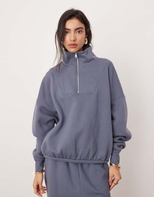 Sudadera azul pizarra extragrande con media cremallera de tejido grueso premium de ASOS EDITION