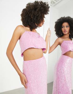 Top corto rosa de tirantes de lentejuelas de ASOS Edition