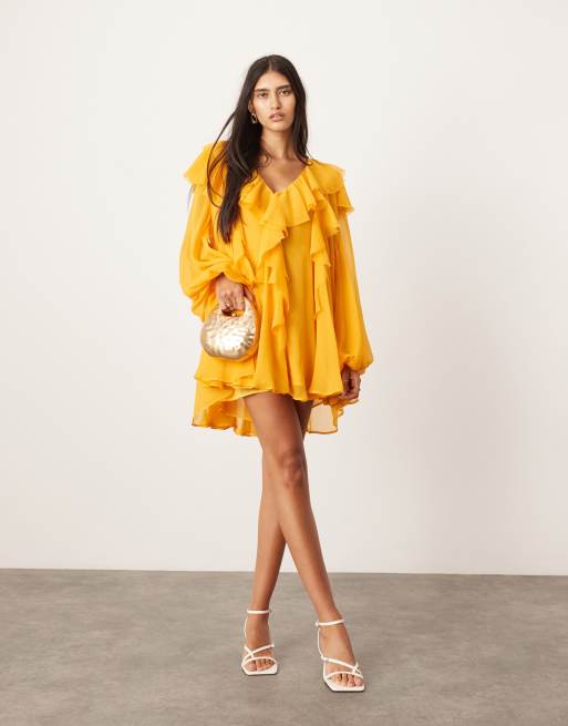Vestido corto naranja con volantes y bordes sin rematar de chifón de ASOS EDITION