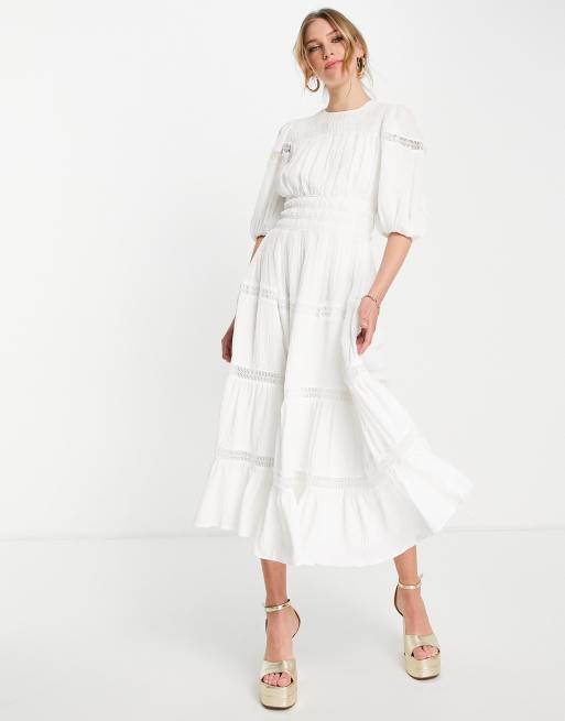Vestido largo con detalle fruncido e insertos de encaje de ASOS EDITION
