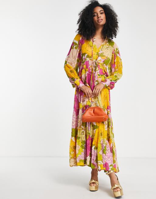 Vestido largo escalonado con estampado floral retro de ASOS EDITION