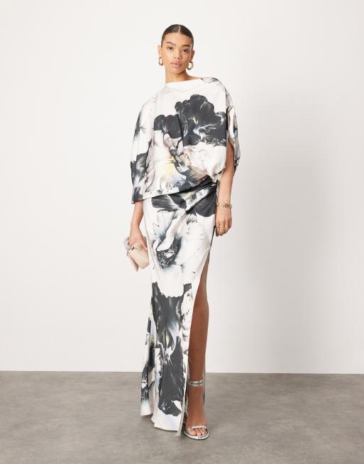 Vestido largo extragrande asimétrico con estampado floral grande de satén de ASOS EDITION