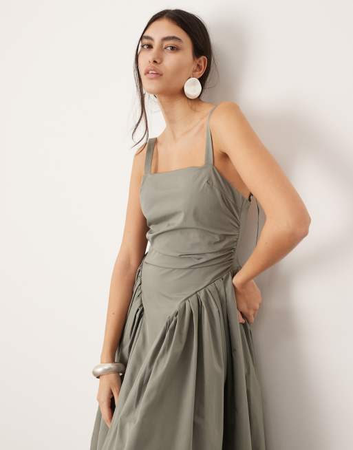 Vestido largo gris fruncido con cintura asimétrica y detalle de anilla semicircular de ASOS EDITION