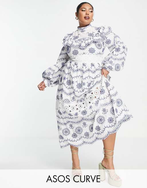 Vestido midi con mangas estilo blusón y bordados en contraste de ASOS EDITION Curve