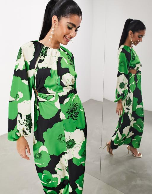 Vestido midi verde con mangas voluminosas, detalle de abertura y estampado floral de ASOS EDITION