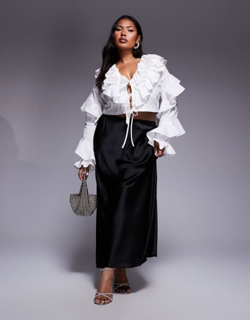 Blusa blanca con volantes extragrandes de popelina de algodón de ASOS LUXE Curve