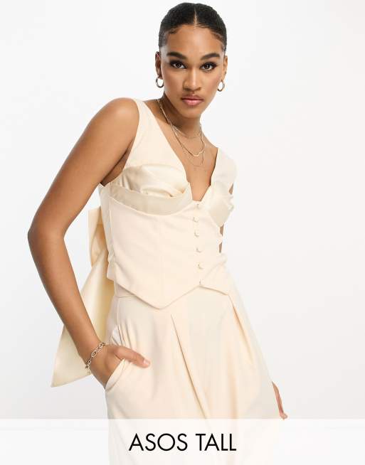 Chaleco de traje de sastre color crema con detalle de lazo en la espalda de ASOS Luxe Tall (parte de un conjunto)