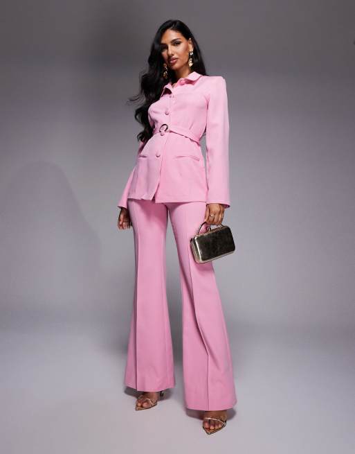 Conjunto rosa de pantalones de pernera recta con cinturón y americana con solapas y botones de ASOS LUXE